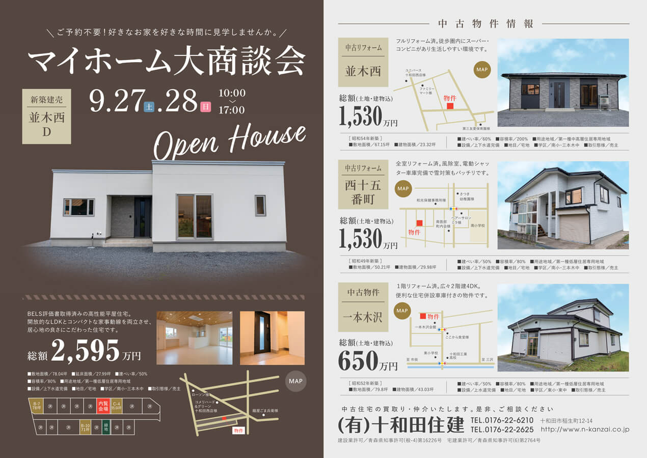 2022年9月3~4日 十和田市西小稲・元町西五丁目「建売住宅販売会」 折込広告