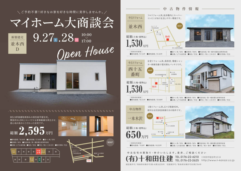 2025年9月27~28日 十和田市並木西地区「マイホーム大商談会」折込広告