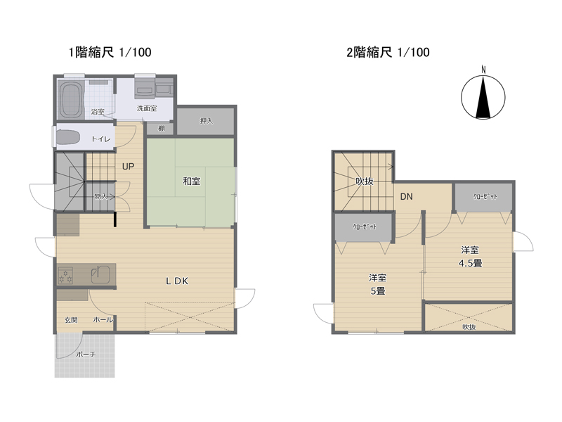 (1F:LDK7帖、和室4.5帖 2F:洋室5帖、洋室4.5帖)